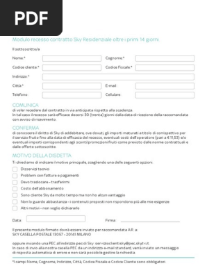 Disdetta Teletu Moduli PDF compilabili on line - TelefoniNostop Tempi disdetta: Ricordati che per disdire il contratto Teletu dovrai inviare la raccomandata. Teletu, una volta ricevuta la tua disdetta, provvederà a chiudere l'abbonamento entro i 30 giorni dalla ricezione della raccomandata. Se ad esempio disdici inviando la lettera raccomandata il 28 giugno Teletu chiuderà il tuo abbonamento entro il 28 ... Disdetta TIM: Procedura Modulo e Fac-simile - Ufficio postale Se vuoi scrivere la lettera di disdetta di tuo pugno, ricorda di inserire tutti i dati essenziali: nome, cognome, data e luogo di nascita, indirizzo, codice cliente, la richiesta di disdetta (a seconda della modalità di recesso), data e firma. -> Scarica Modulo Disdetta Linea Fissa entro 14 giorni senza passaggio a nuovo operatore Modulo disdetta contratto: fac simile per tutte le occasioni - NotizieOra Come disdire un contratto affinché non venga rinnovato tacitamente alla scadenza. Si tratta di una semplice disdetta in cui uno dei contraenti manifesta la propria volontà di sciogliere il legame contrattuale ed evitare il rinnovo tacito. Abbiamo elaborato un fac simile da personalizzare e utilizzare per ogni occasione.